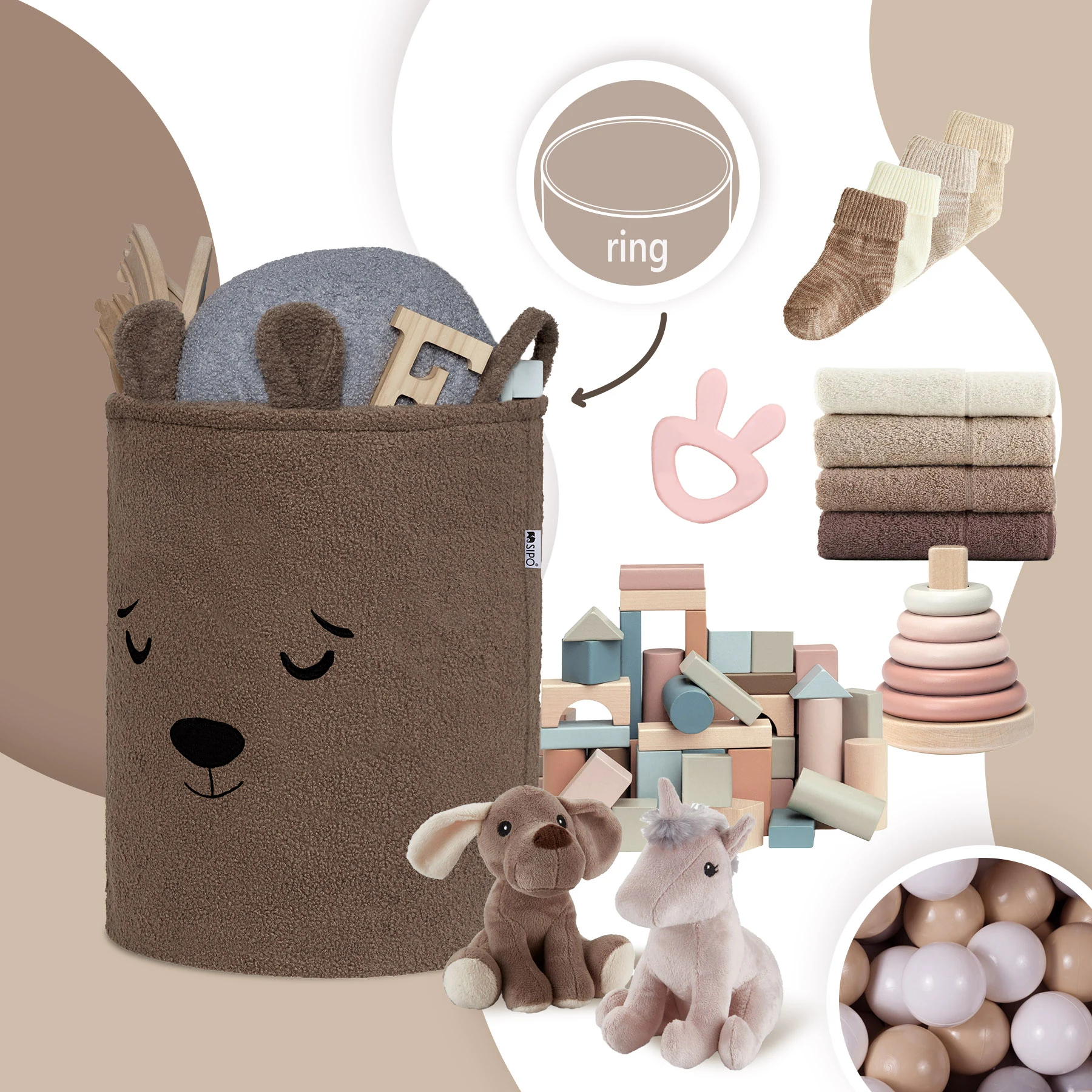 SIPO Kosz na zabawki Bear miś 43 L.Brązowy XL ściągacz