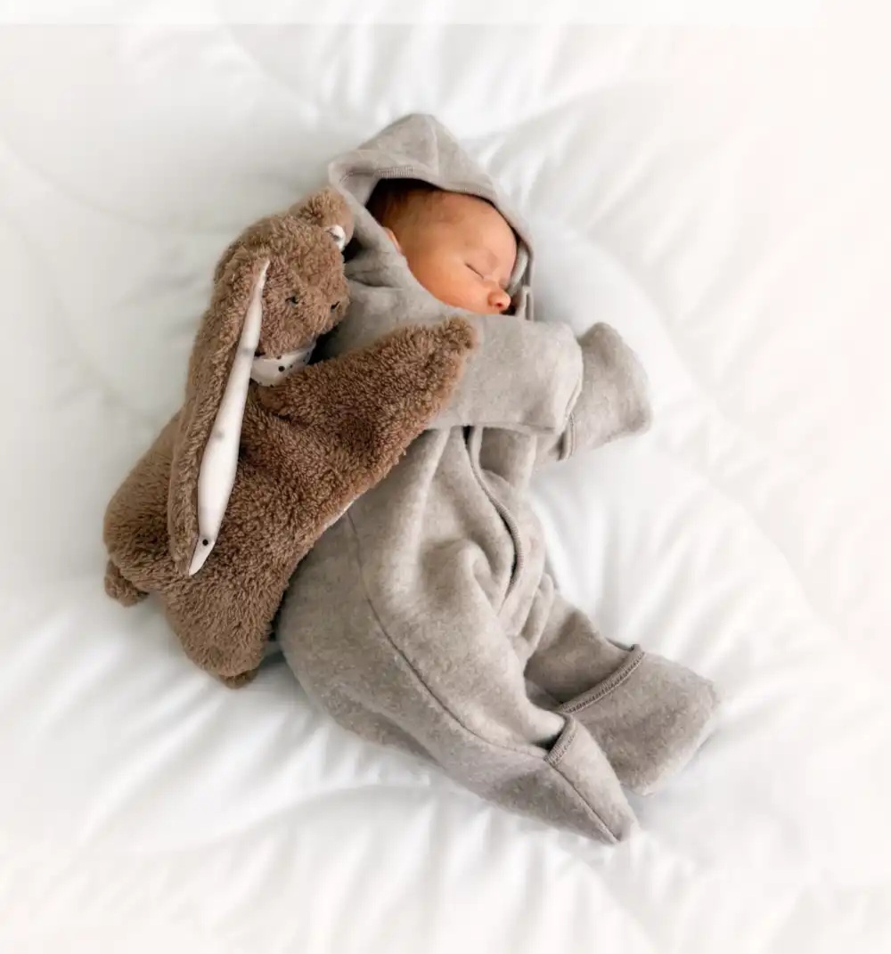 Ciepluś to wyjątkowo przytulny towarzysz, który zachwyca głębokim, ciepłym odcieniem brązu i swoimi długimi, miękkimi uszami. To zaawansowane połączenie przytulanki, naturalnego termofora i wsparcia sensorycznego. Został stworzony, by imitować dotyk dłoni rodzica, pomagając maluszkowi wyciszyć się i zasnąć w poczuciu pełnego bezpieczeństwa.